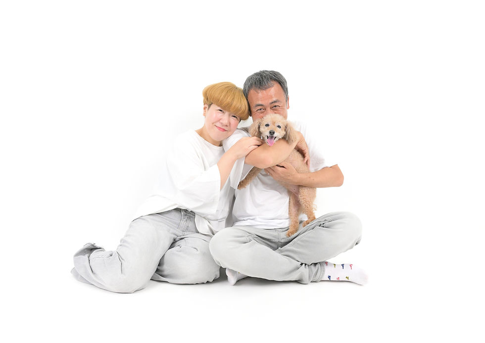 いつもと変わらないスタイル、何も飾らない真っ白な背景が「一生の思い出」となる、そんな家族写真を心を込めて撮影させていただきます。私たちが撮影するのは「愛犬との幸せな時間」です。